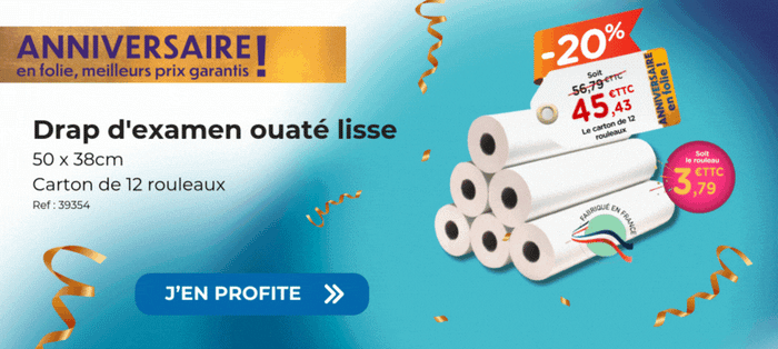 Drap d'examen ouaté lisse 50x35 cm M'Roll - Carton de 12 rouleaux