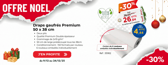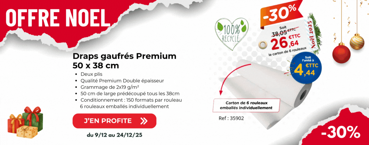 Drap d'examen ouaté lisse 50x35 cm M'Roll - Carton de 12 rouleaux