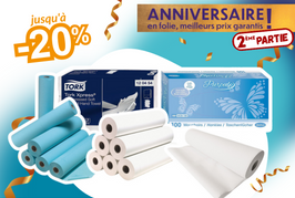 Draps d’examen, Essuie-mains, mouchoirs… en promotion Anniversaire !