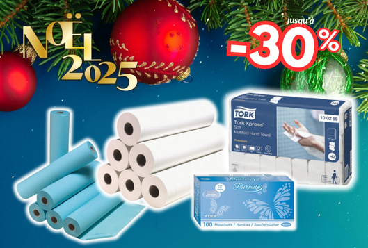 Draps d’examen, essuie-mains, essuie-tout, mouchoirs… en Promo Noël !