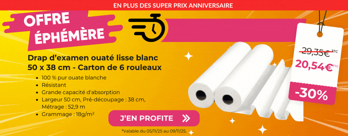 Drap d'examen ouaté lisse 50x35 cm M'Roll - Carton de 12 rouleaux